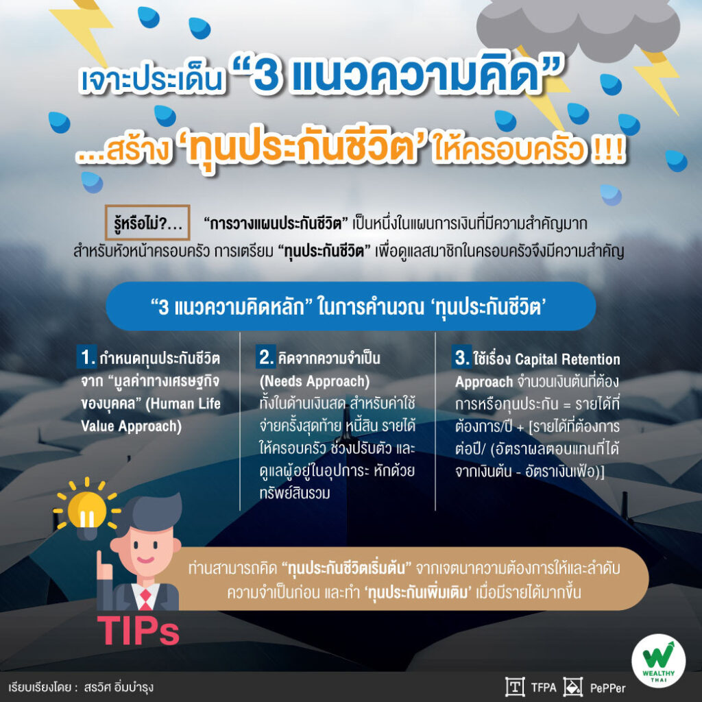 การเตรียม “ทุนประกันชีวิต” เพื่อดูแลสมาชิกในครอบครัวจึงมีความสำคัญ เสมือนยังคงมีรายได้หลักที่หัวหน้าครอบครัวมอบไว้ เมื่อยามมีเหตุการณ์ที่ไม่คาดคิดเกิดขึ้น วันนี้เราจะมาเทียบ “3 แนวความคิดหลัก” ในการคำนวณทุนประกันชีวิตกันค่ะเพื่อเป็นแนวทางการเตรียมการ ส่งมอบความห่วงใยให้ครอบครัวได้อย่างเพียงพอในการดำรงชีพต่อไปได้อย่างดี